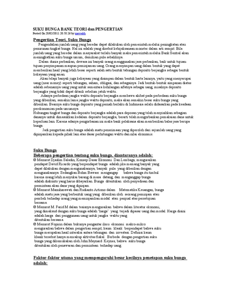 SUKU BUNGA BANK TEORI dan PENGERTIAN